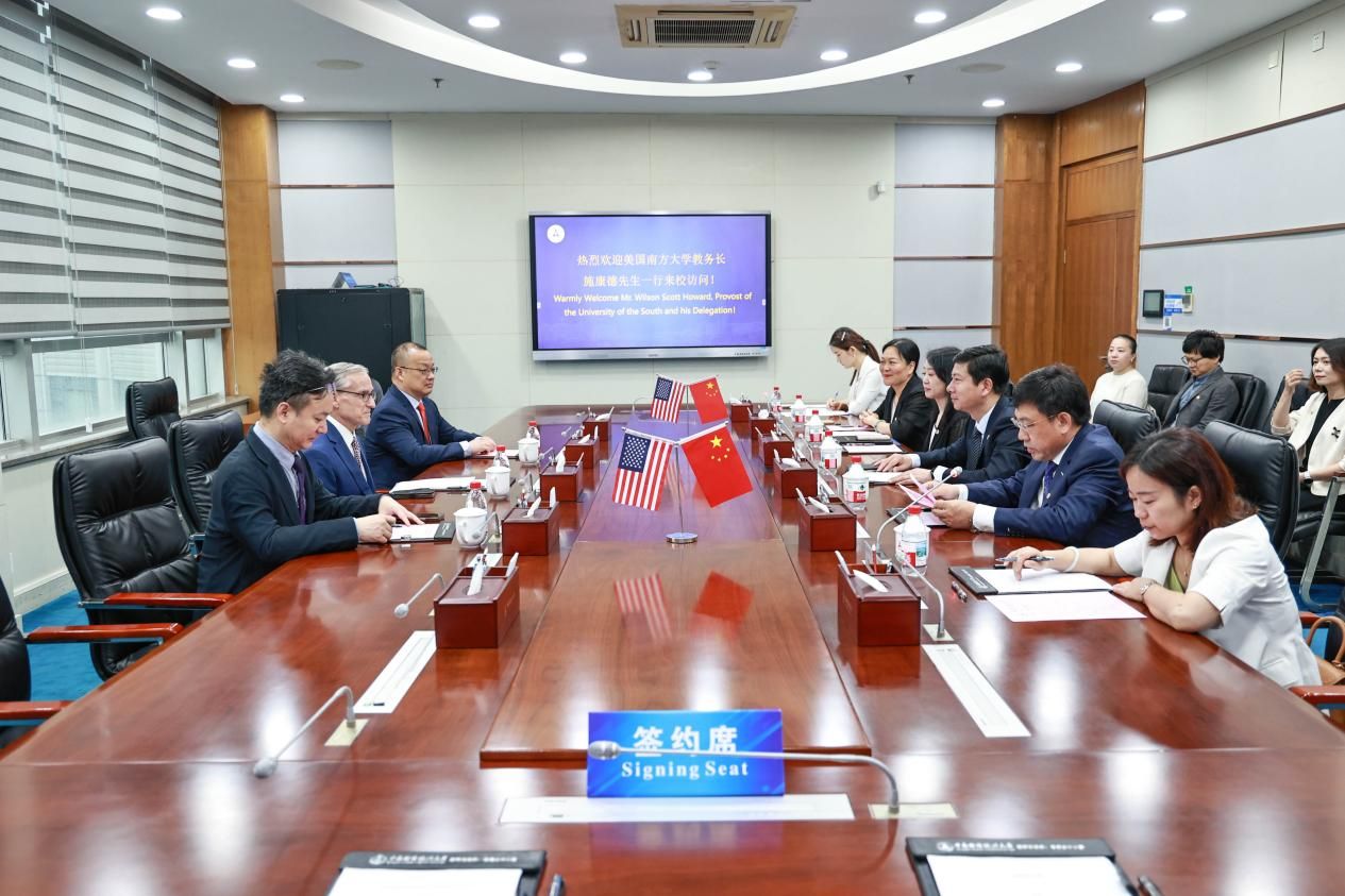 6月21日上午,美国南方大学教务长施康德一行访问我校,双方在中原楼五楼会议室举行会谈。校长、党委副书记朱方伟出席会议,党委常委、副校长刘仁山主持,国际交流部、国际教育学院、文澜学院主要负责人参加座谈。