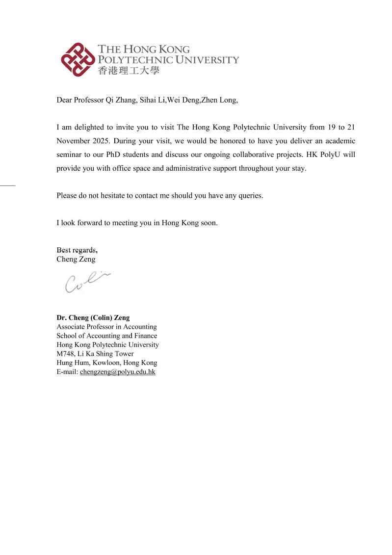 11月19日 为香港理工大学会计及金融学院博士生开展讲座;与香港理工大学会计及金融学院专任教师进行交流